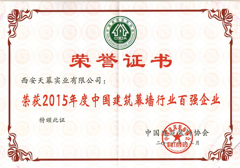 2015年度中國建筑幕墻行業(yè)百強企業(yè)