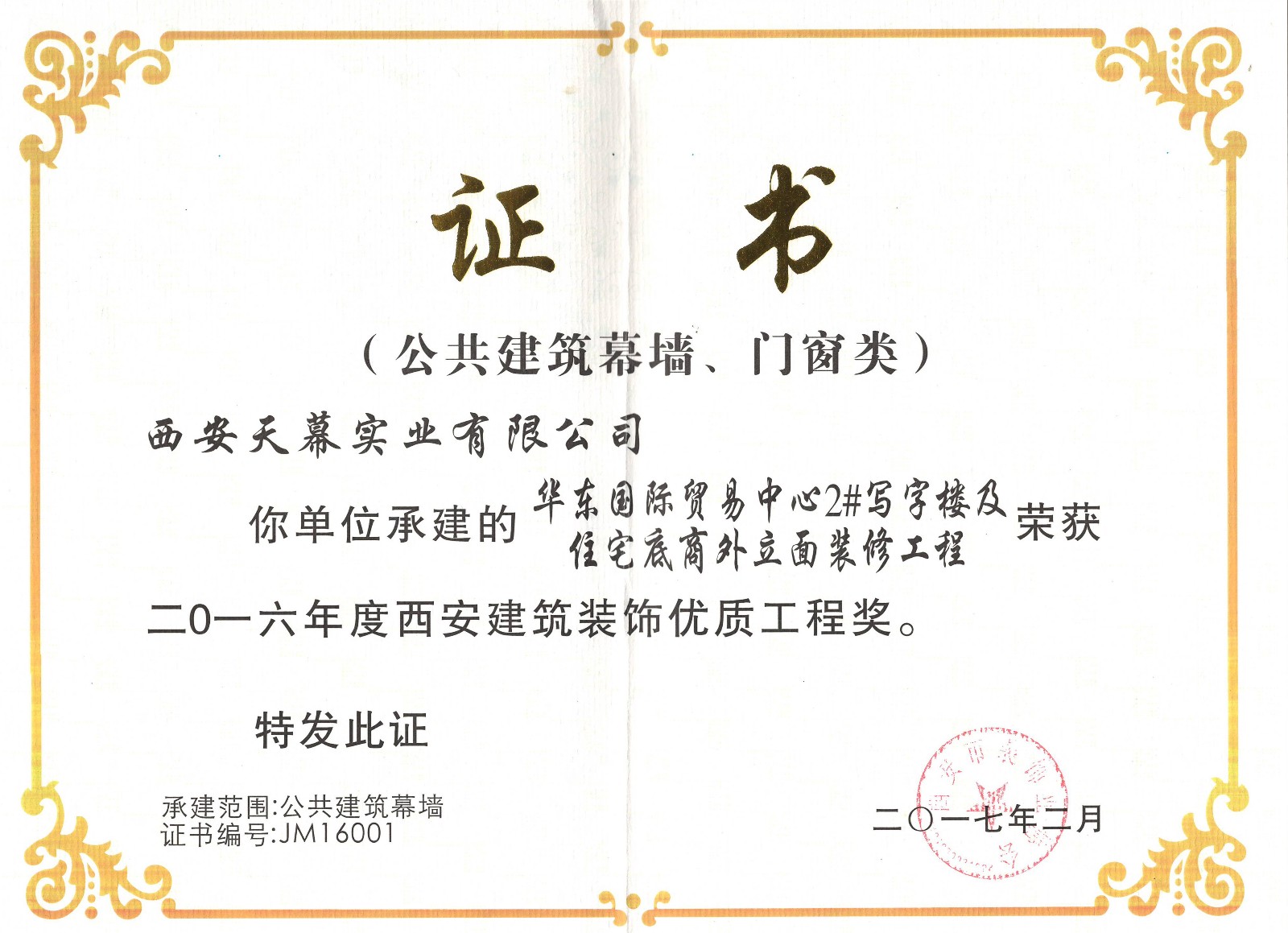 2016年“雁塔杯”——華東國(guó)際貿(mào)易中心2#寫(xiě)字樓