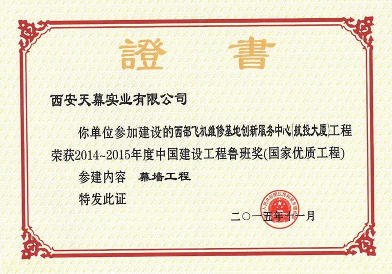 2014-2015年度中國(guó)建設(shè)工程魯班獎(jiǎng)——航投大廈