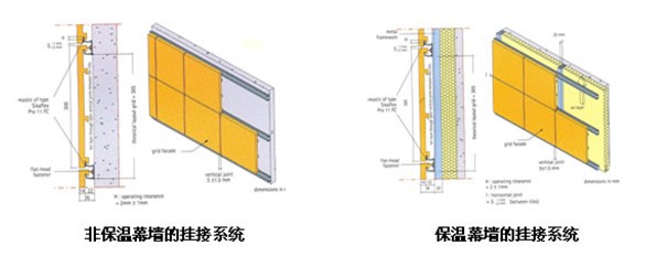 目前陶土板幕墻有四種安裝固定方式:板塊直接卡接、掛件掛接、背栓連接、壓板壓接。應(yīng)用最多的是直接卡接和掛件掛接。主體結(jié)構(gòu)的墻體可根據(jù)設(shè)計(jì)要求鋪設(shè)保溫棉。保溫棉的厚度一般為50mm。卡接和掛接的安裝方法是在建筑主體結(jié)構(gòu)上固定龍骨,陶土板塊直接卡接或掛接在龍骨上。沒有保溫棉時(shí)可只設(shè)橫向龍骨;有保溫棉時(shí)則豎向和橫向均要設(shè)置龍骨。 ![]()