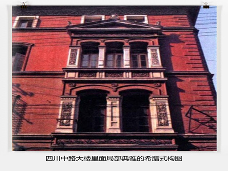 上海屬于文藝復(fù)興風(fēng)格的建筑大多建成于19世紀(jì)后期,其中比較重要的代表當(dāng)屬四川中路185號(hào)原三井洋行上海分公司,1903年日籍建筑師平野勇造設(shè)計(jì)。奉仿意大利文藝復(fù)興府邸式,褚紅色的清水磚外墻雖樸實(shí)無(wú)華,但沿四川路的東立面卻有兩組垂直的希臘式三角形山花與三聯(lián)窗、雙聯(lián)窗的組合,每層之間都有明顯的腰線(xiàn),做工精確而細(xì)膩。頂部出搪較深.澹下及門(mén)窗等部位有精致的磚雕。又如美孚行大樓,1911年建造,即今廣東路94號(hào)黃浦區(qū)中心醫(yī)院。立面作三段式劃分,人口為白色大理石門(mén)廊。塔司干式柱,上部支承陽(yáng)臺(tái).二層作半圓券窗,窗間墻飾粗石壁柱。第三、四層間有較深的挑塘,第四層以連續(xù)的愛(ài)奧尼克式雙壁柱構(gòu)成裝飾性外廊,頂層中部原來(lái)還有一裝飾性山墻,飾有山花、半圓券窗,惜現(xiàn)已無(wú)存。還有近外灘的北京東路南側(cè)一整排建筑,立面連續(xù)的券窗和三段式處理顯示了文藝復(fù)興強(qiáng)調(diào)的秩序感。南京東路的慈安里大樓和徐家匯的徐匯中學(xué)主樓,則屬干法國(guó)文藝復(fù)興風(fēng)格,只是前者多了一點(diǎn)巴洛克的曲線(xiàn),后者添了一些宗教的沉靜氣氛。