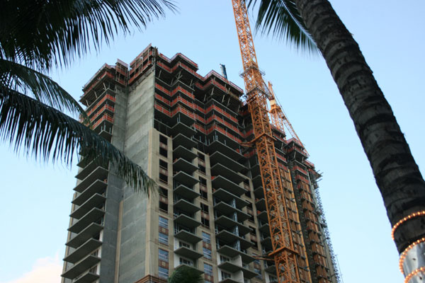夏威夷附近正在建設(shè)的樓層:美國(guó)建筑工業(yè)化十分發(fā)達(dá),施工過程中人工的配比比例很小,建設(shè)速度很快。