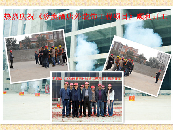 今天很有幸請到了建設(shè)方西安珍澳實(shí)業(yè)有限公司珍澳酒店外裝飾項(xiàng)目總負(fù)責(zé)人王總,外裝飾項(xiàng)目技術(shù)孫工。施工方西安天幕實(shí)業(yè)有限公司董事長吳總,項(xiàng)目負(fù)責(zé)吳亞軍經(jīng)理,生產(chǎn)技術(shù)負(fù)責(zé)吳潤全經(jīng)理,執(zhí)行技術(shù)負(fù)責(zé)劉經(jīng)理,質(zhì)量把關(guān)樊部長。兩大公司領(lǐng)導(dǎo)及其各相關(guān)技術(shù)負(fù)責(zé)人齊聚在長安區(qū)王寺鎮(zhèn),共同迎接一個(gè)美好的時(shí)刻?!段靼舱浒木频晖庋b飾建設(shè)工程施工項(xiàng)目》在此舉行隆重的開工慶典儀式,為本次建設(shè)工程揭開完美的序幕。我代表施工方天幕公司向工程的開工表示熱烈的祝賀!對光臨開工儀式的各位領(lǐng)導(dǎo)、各位來賓表示熱烈的歡迎并致以美好的祝愿!