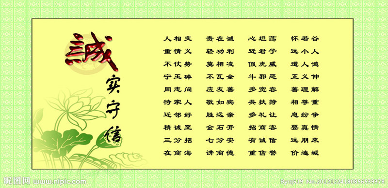 誠信,說小一點(diǎn),是反映一個(gè)人的人為修養(yǎng)和品德素質(zhì)。說大一點(diǎn),體現(xiàn)一個(gè)企業(yè)的高品質(zhì)管理和發(fā)展趨勢,說再大一點(diǎn)那就是一個(gè)國家的榮辱興衰。