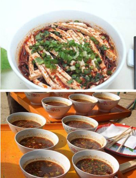 我的家鄉(xiāng)在陜甘交界處的一個(gè)縣城--長(zhǎng)武,黃土高原上樸實(shí)的西北人民在長(zhǎng)期的生產(chǎn)生活中發(fā)明了很多別具特色的美食。不必說(shuō)大如鍋蓋的鍋盔饃,十里噴香的燒雞,也不必說(shuō)酥脆香甜可口的麻糖,勁道柔韌的褲帶面,單是家鄉(xiāng)的血條湯令我每每想起就垂涎三尺。