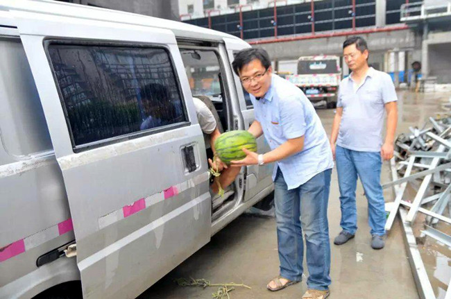 7月27日下午,頂著炎炎烈日、迎著滾滾熱浪,公司工程部副總雷曉峰、質(zhì)檢部部長(zhǎng)王健、行政部劉新峰主任等公司相關(guān)領(lǐng)導(dǎo)一行5人走進(jìn)高新9號(hào)廣場(chǎng)施工現(xiàn)場(chǎng)看望慰問(wèn)一線建筑工人,并且為在一線工人送來(lái)了西瓜、綠豆、毛巾、白糖及茶葉等夏季防暑降溫物品,同時(shí)提醒大家,要增強(qiáng)安全防范意識(shí)、自我保護(hù)能力以及新安全生產(chǎn)法的學(xué)習(xí);要求項(xiàng)目部要牢固樹(shù)立“安全第一、預(yù)防為主”的思想,抓好夏季防暑降溫工作,合理安排好施工人員的作業(yè)時(shí)間,改善勞動(dòng)條件,確保一線工人的身體健康和施工安全。